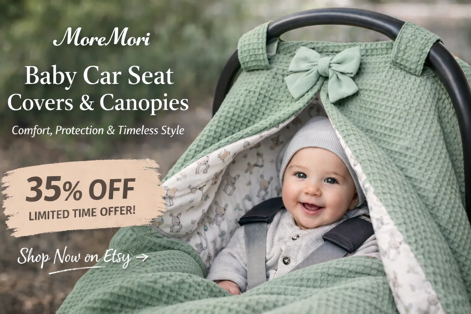 Our signature baby designs combine comfort and function using a two-fabric structure: a breathable waffle cotton outer layer paired with soft printed poplin cotton inside. This thoughtful layering helps our car seat covers, stroller canopies, pram liners, and bedding feel cozy while staying durable and easy to use.