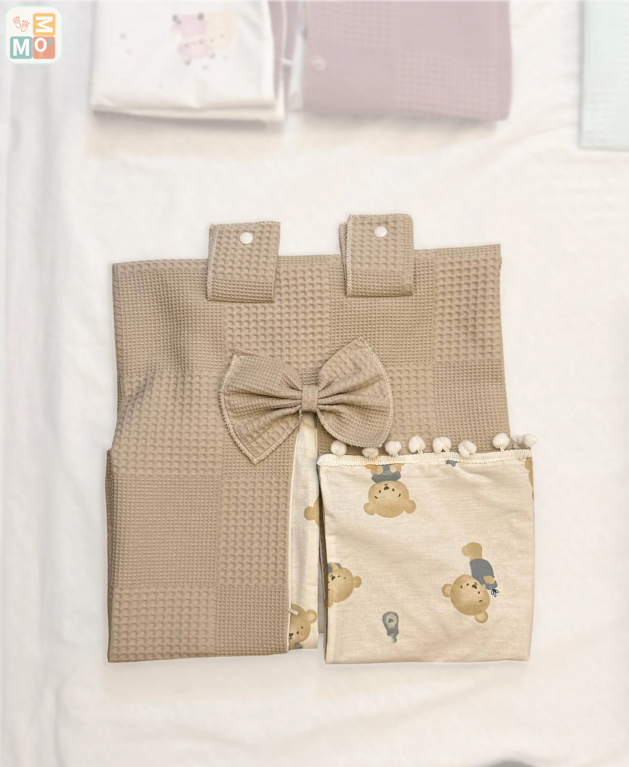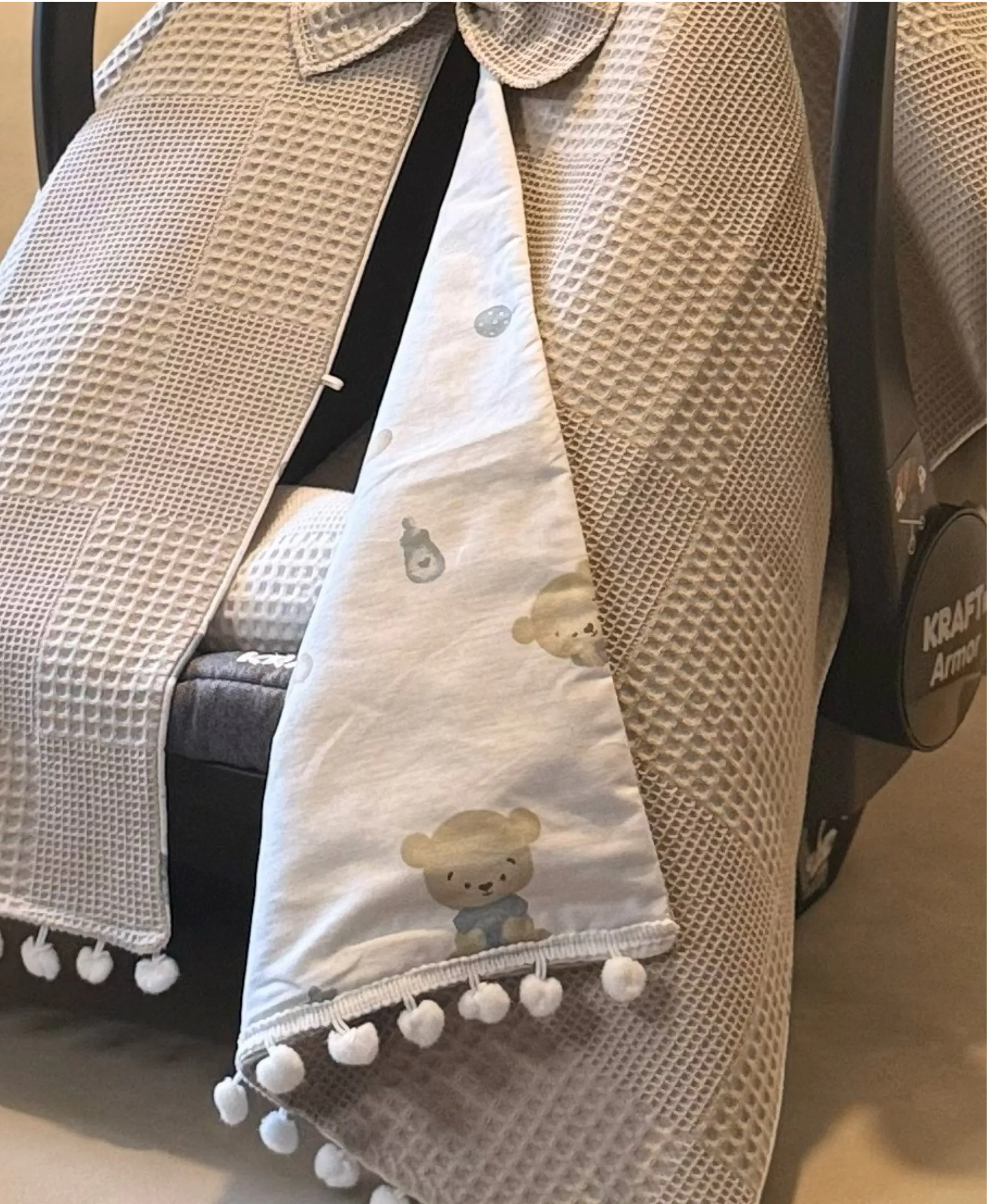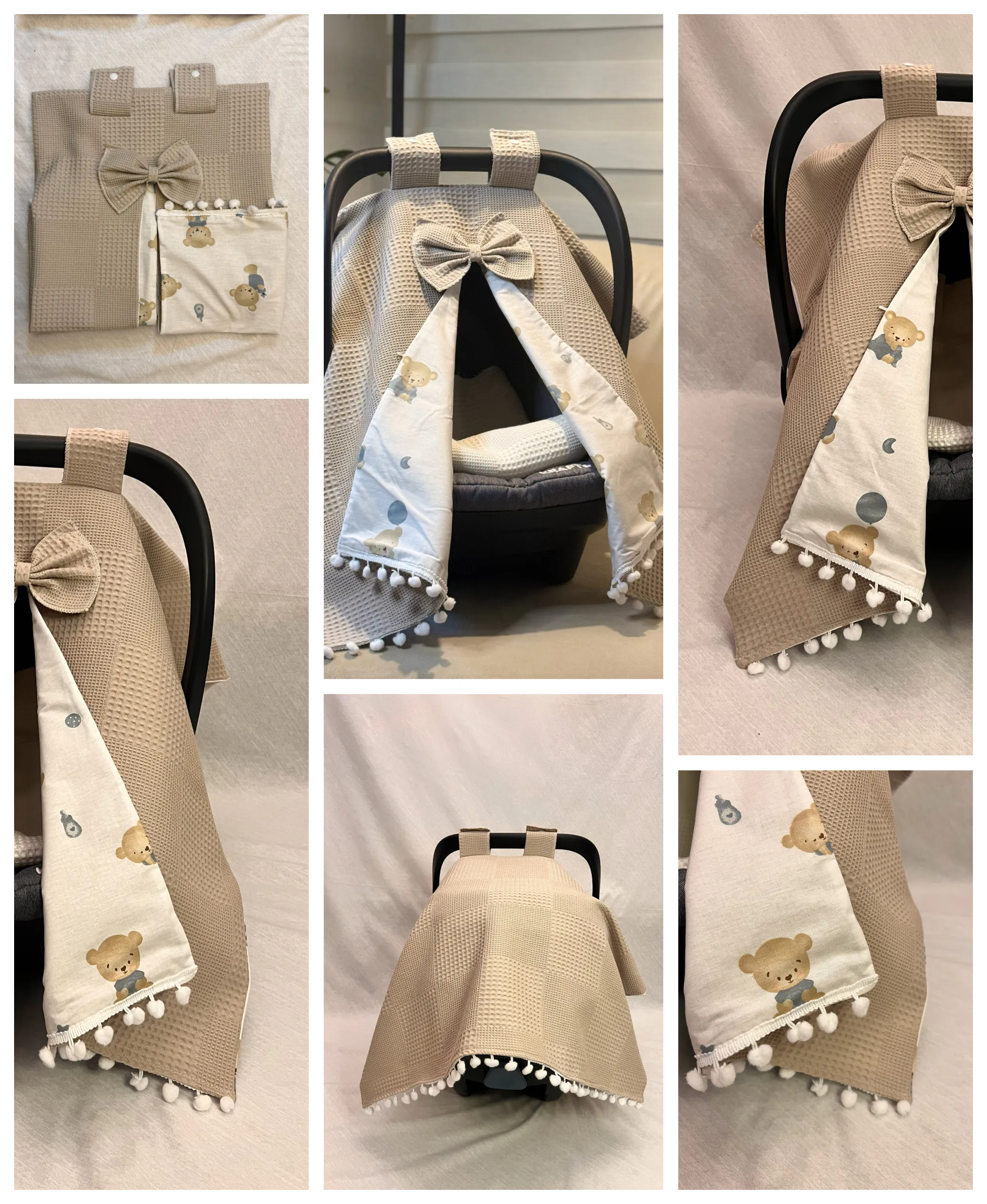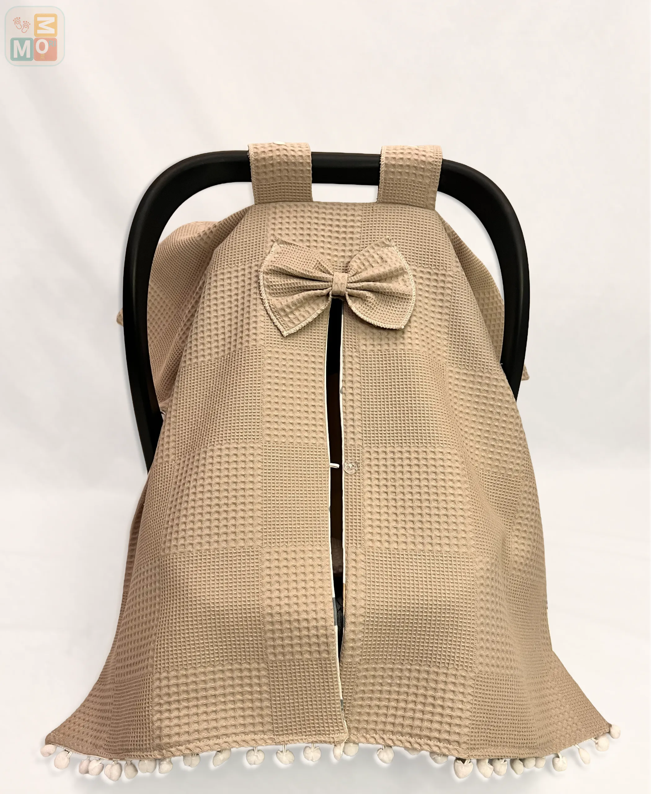 Beige Cotton Baby Car Seat Cover & Stroller Canopy (Waffle + Poplin) — WF05