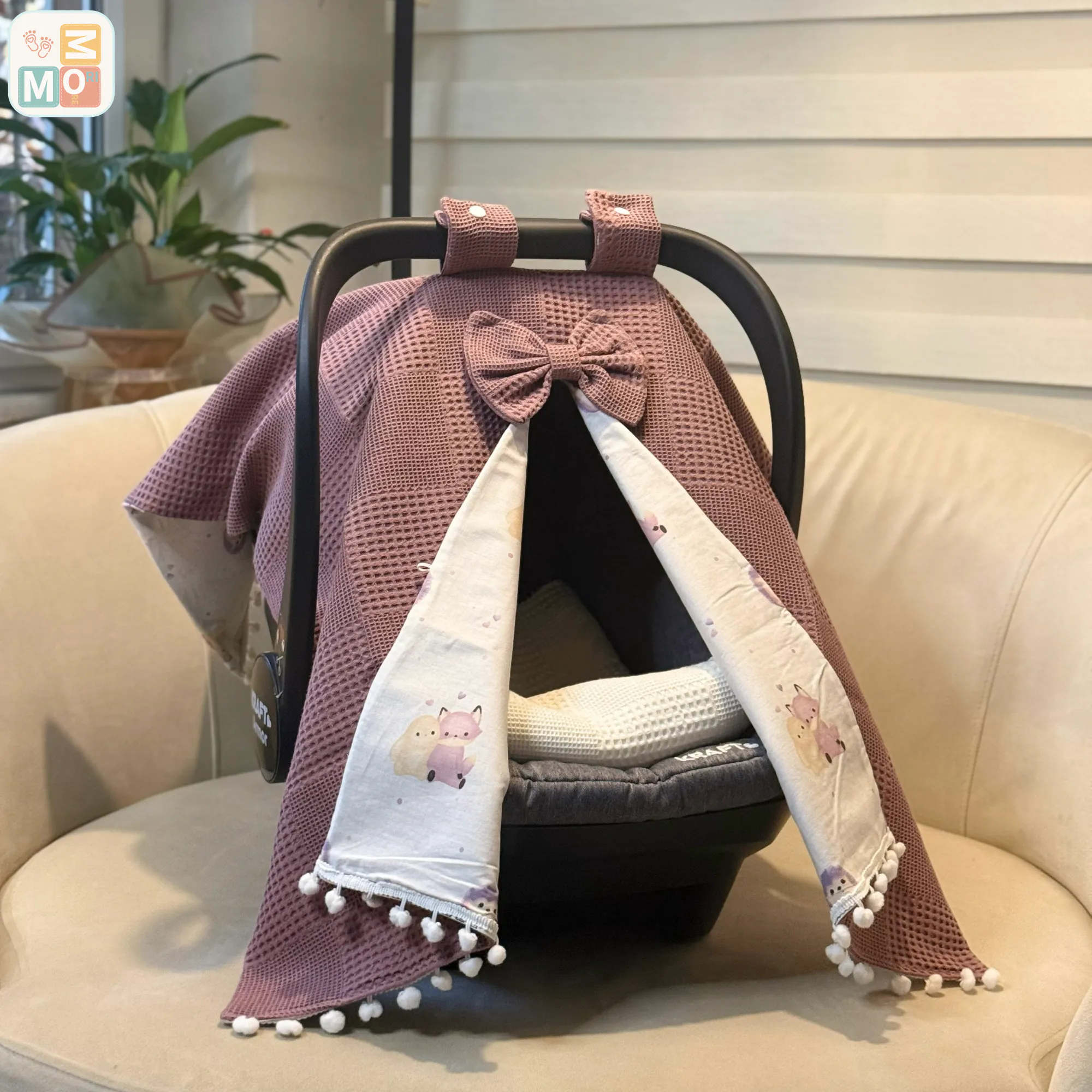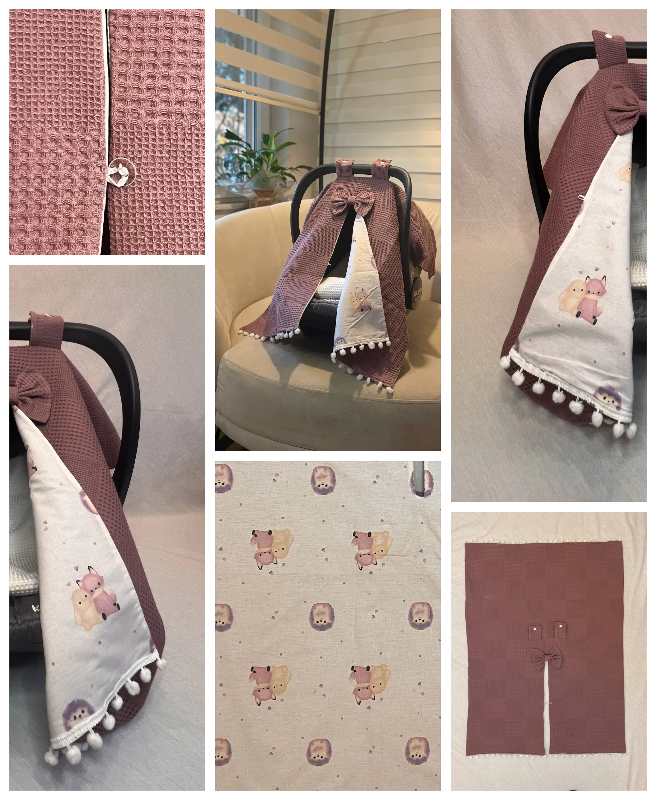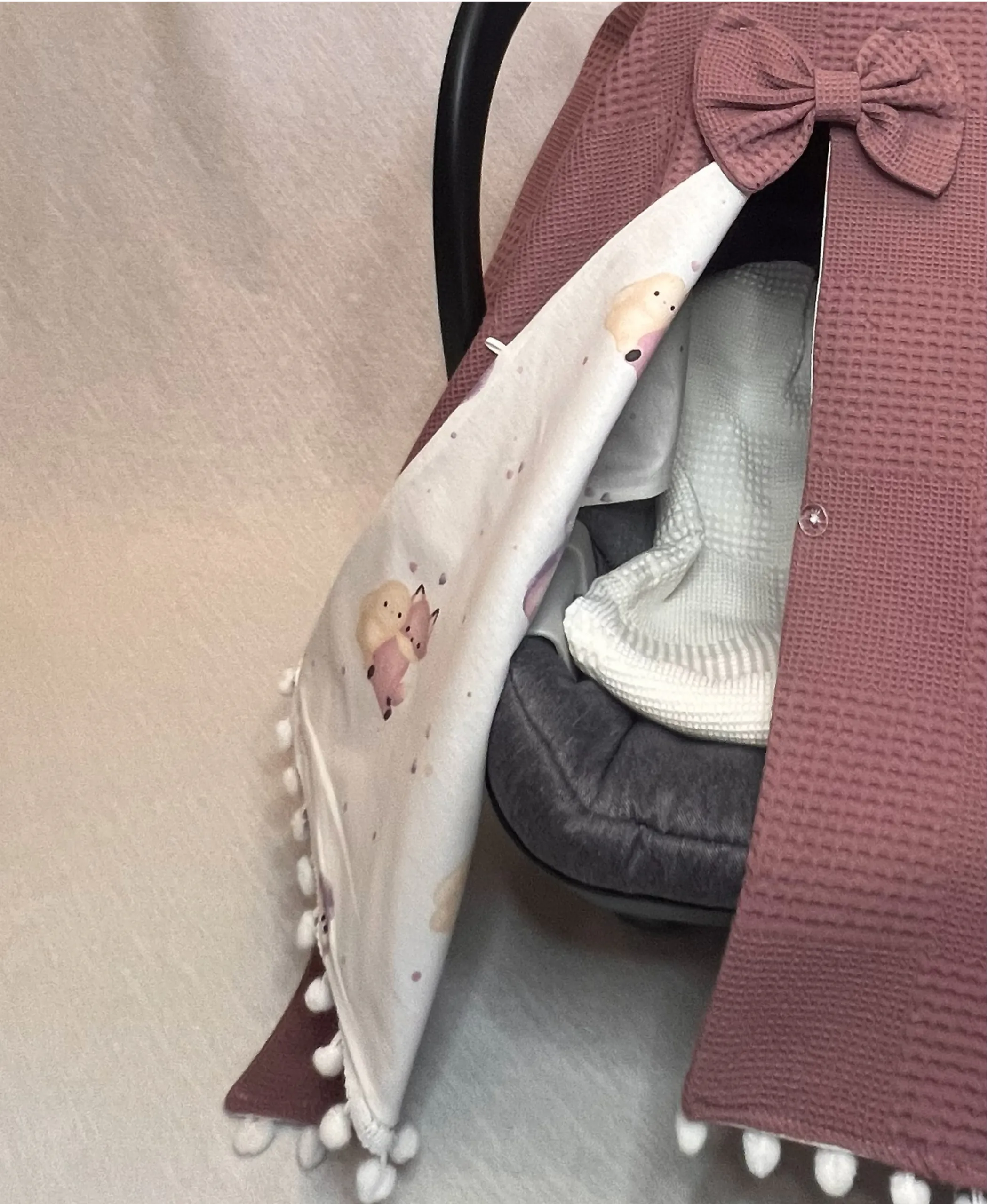 Focus: Dusty Rose Cotton Baby Car Seat Cover FoxBear cover set| waffle + poplin stroller canopy | foxbear pattern | optional pram liner