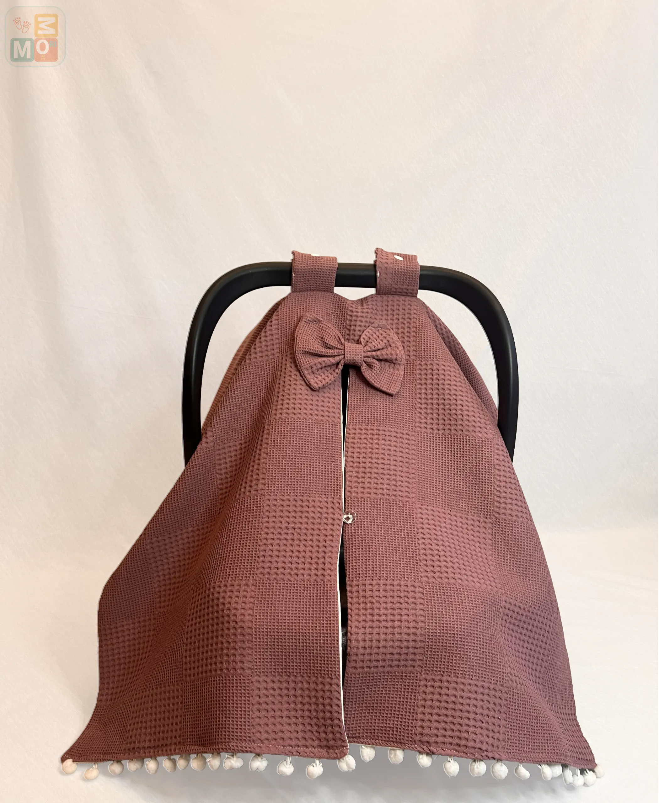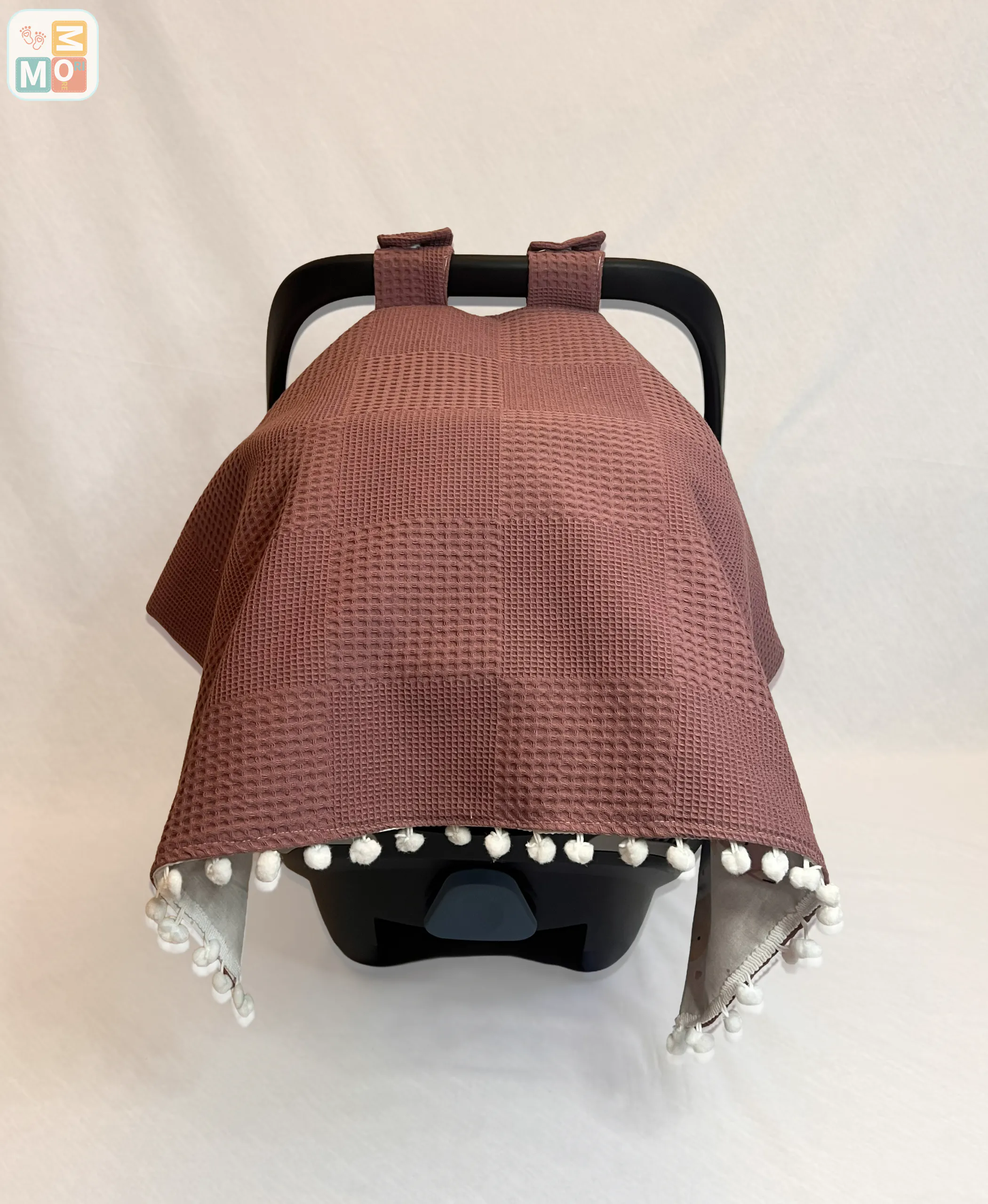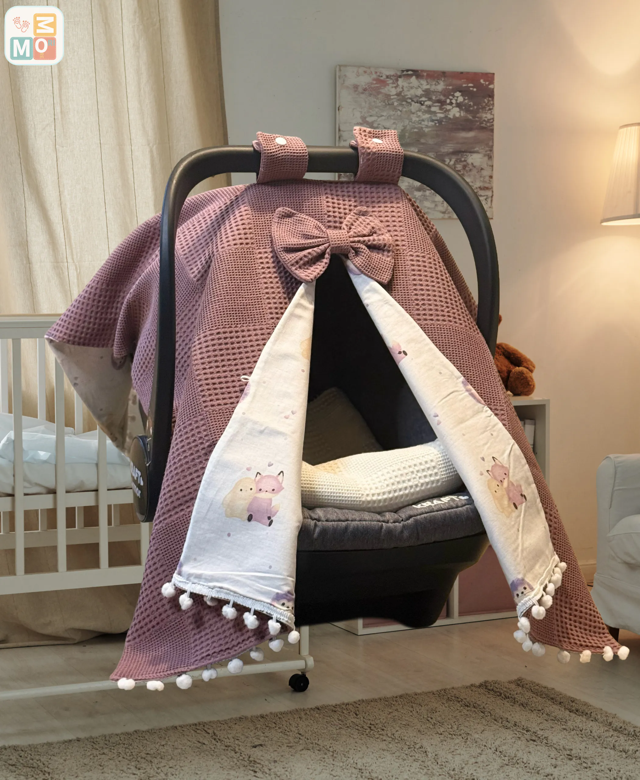 Focus: Dusty Rose Cotton Baby Car Seat Cover FoxBear cover set| waffle + poplin stroller canopy | foxbear pattern | optional pram liner