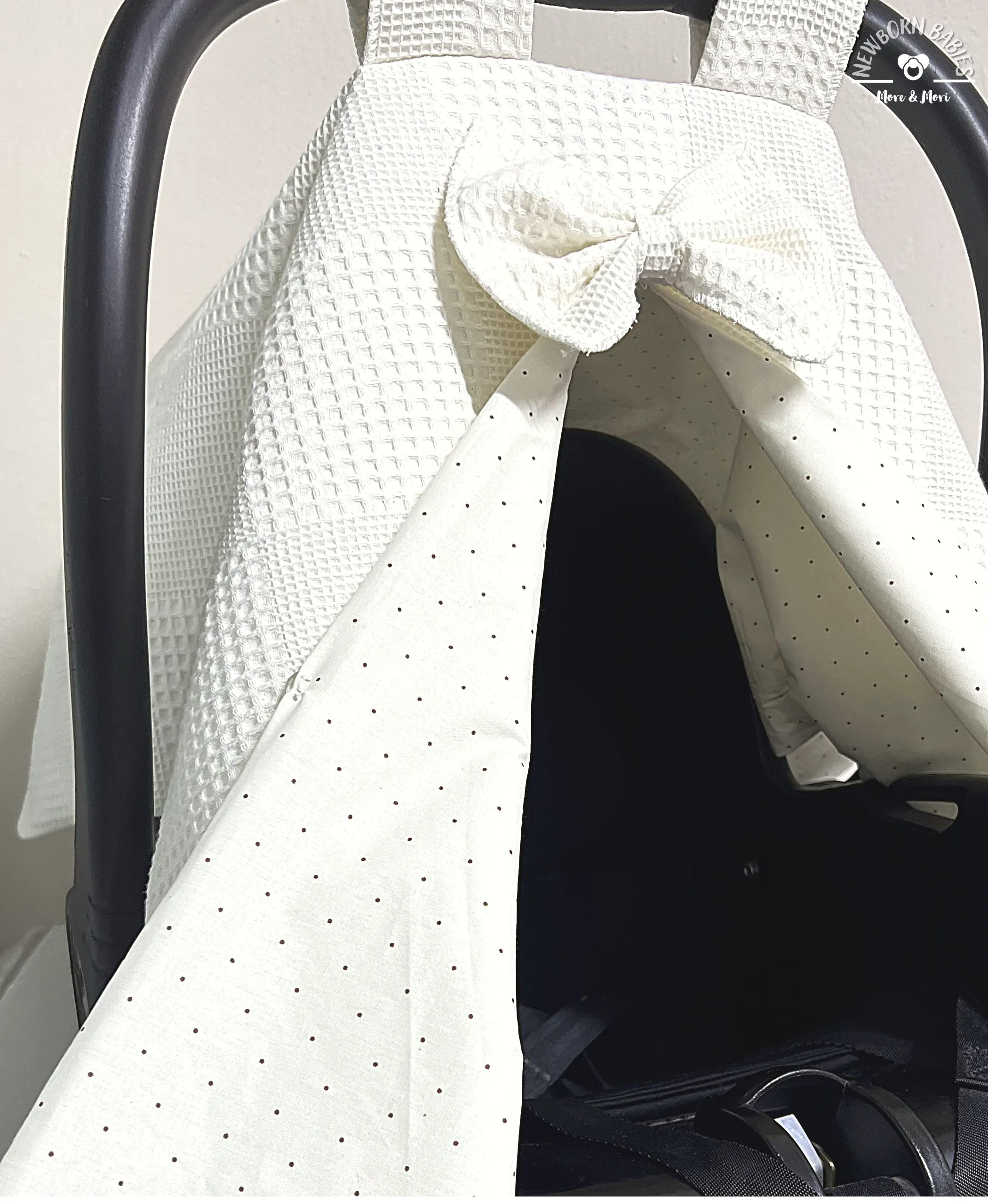 Off White / Cream Stroller Sunshade & Seat Liner Set (Waffle + Poplin) — MN01