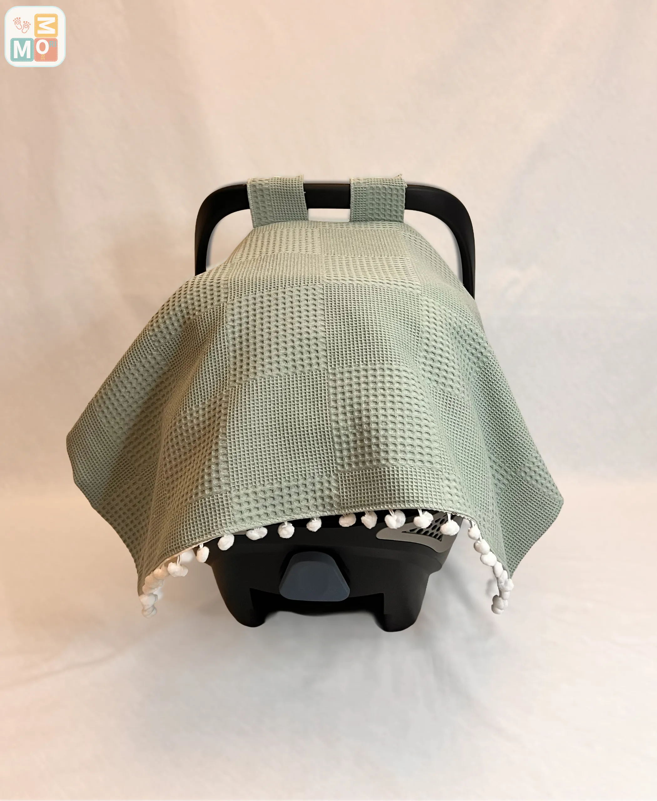 Patina Blue Cotton Baby Car Seat Cover & Stroller Canopy (Waffle + Poplin) ? WF25