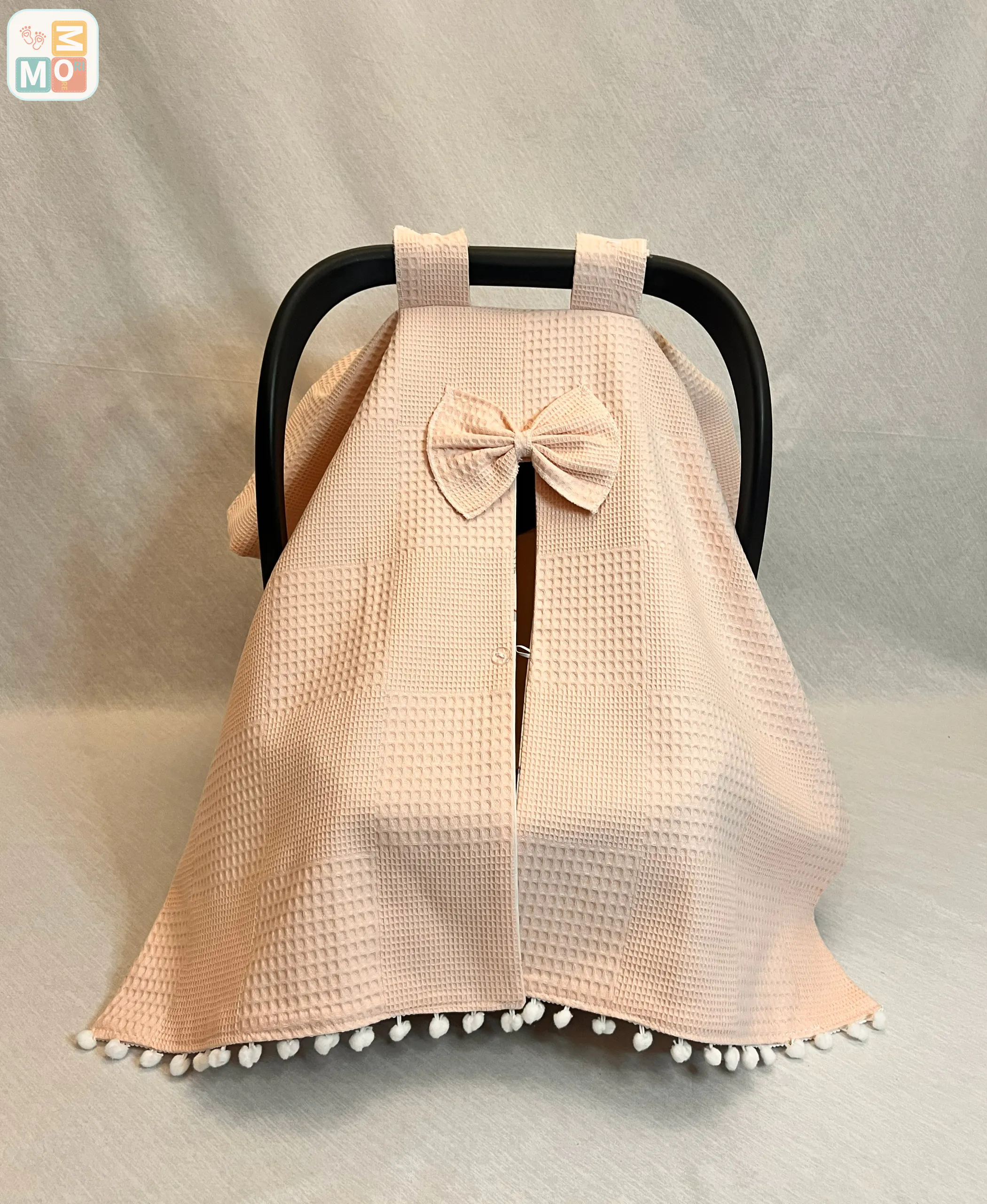 Salmon Pink Cotton Baby Car Seat Cover & Stroller Canopy (Waffle + Poplin) — WF12